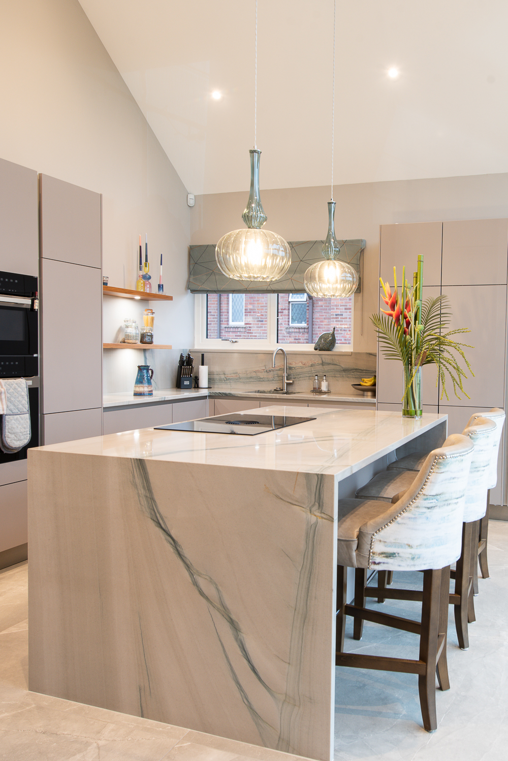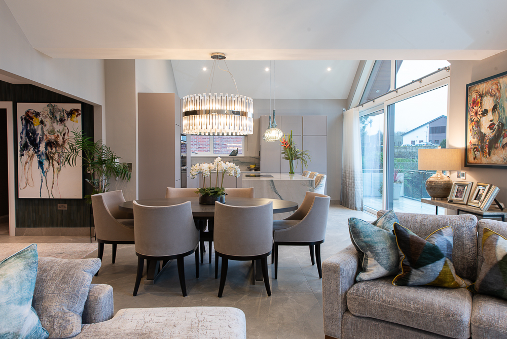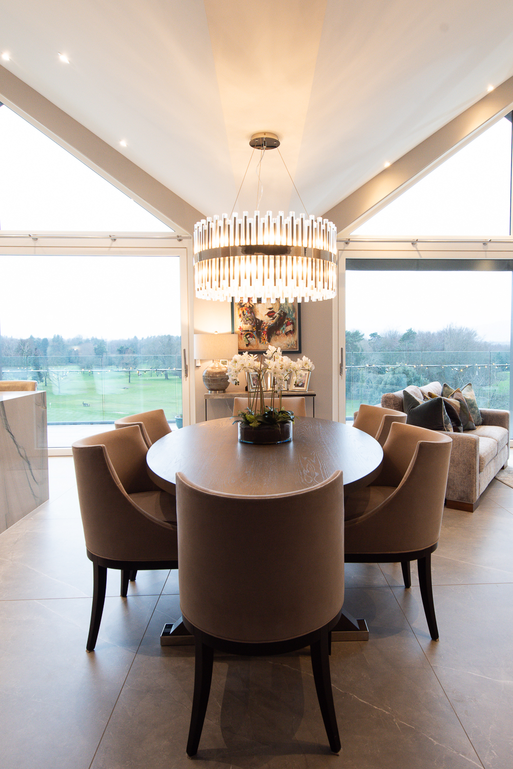 Experience luxury living in this stunning newly redecorated penthouse overlooking a Belfast golf course. The open-plan kitchen, living, and dining area is anchored by an elegant waterfall kitchen island that beautifully integrates calming blue and grey tones. Vaulted ceilings and expansive windows flood the space with natural light, offering breathtaking views and a sophisticated, airy ambiance. This is modern elegance at its finest.