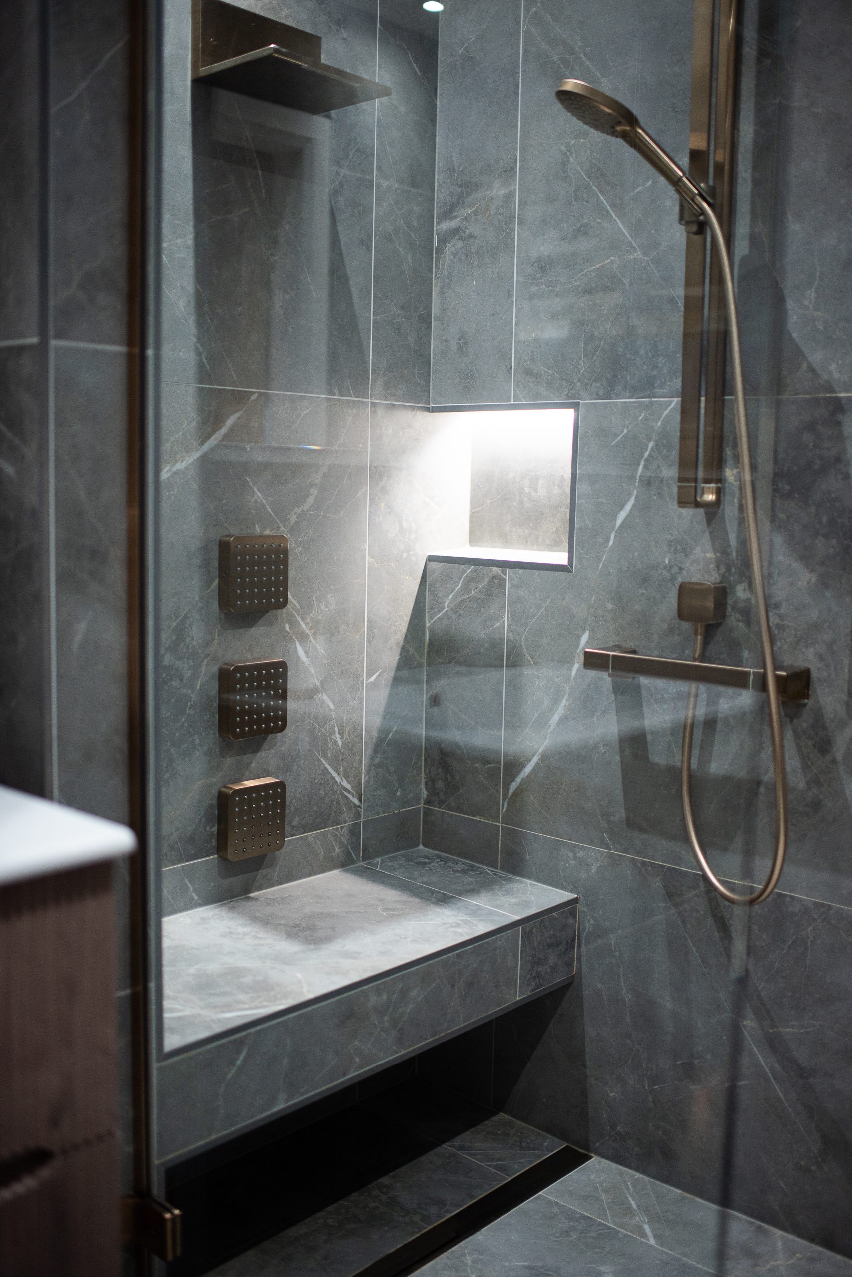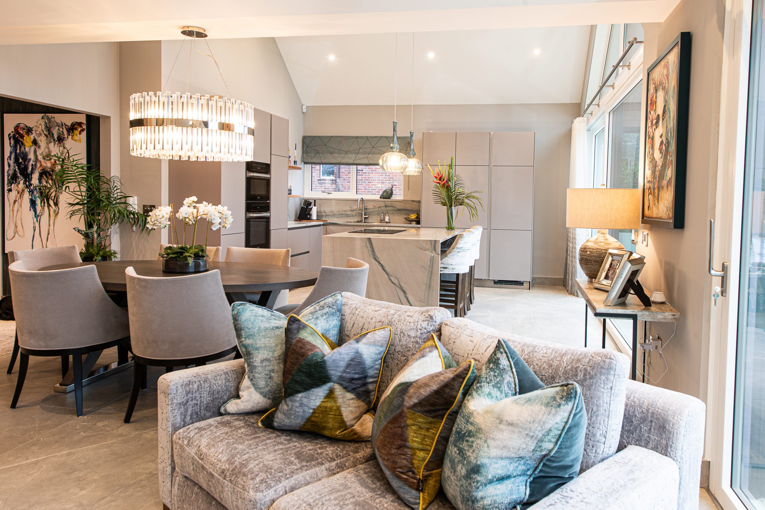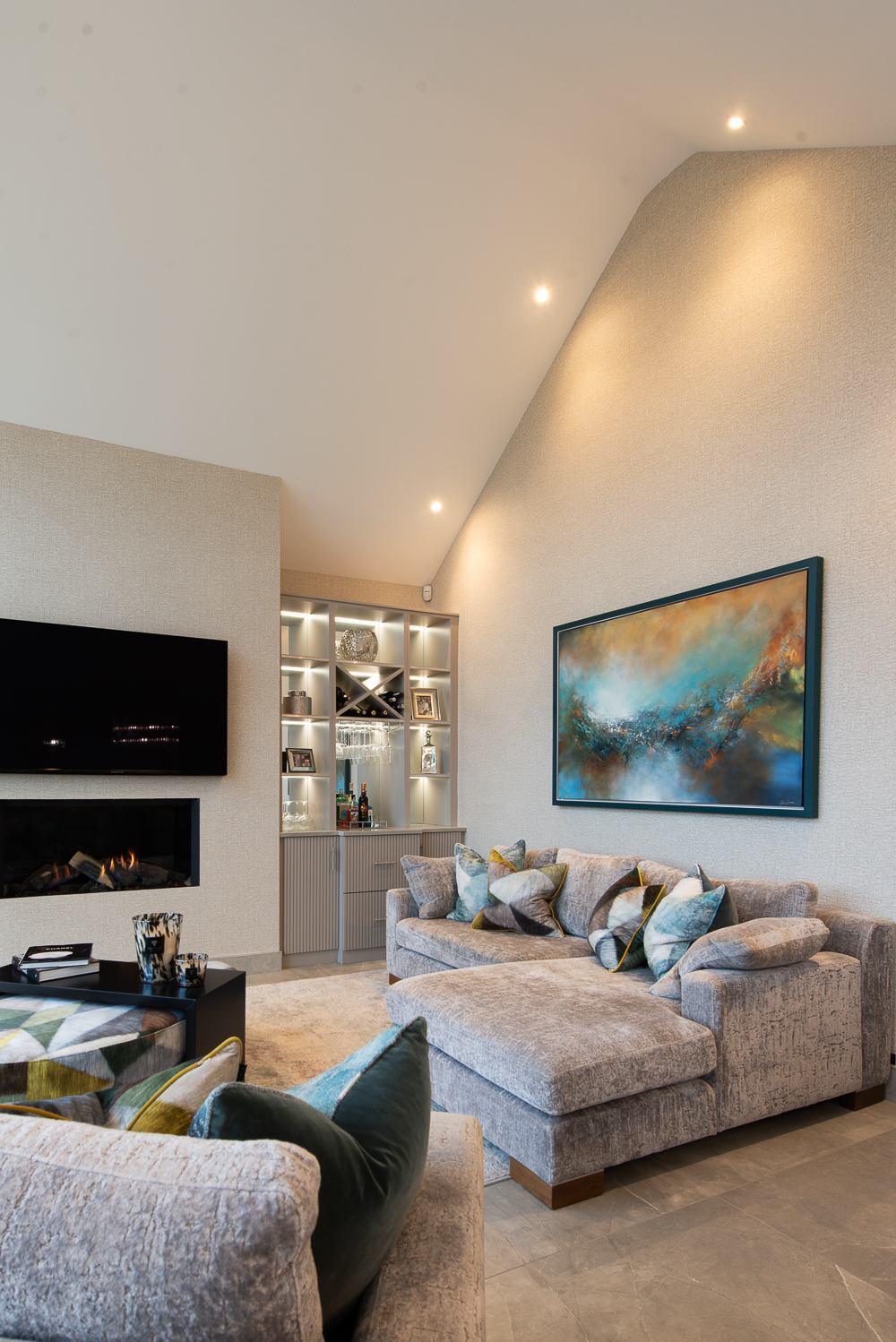 Experience luxury living in this stunning newly redecorated penthouse overlooking a Belfast golf course. The open-plan kitchen, living, and dining area is anchored by an elegant waterfall kitchen island that beautifully integrates calming blue and grey tones. Vaulted ceilings and expansive windows flood the space with natural light, offering breathtaking views and a sophisticated, airy ambiance. This is modern elegance at its finest.